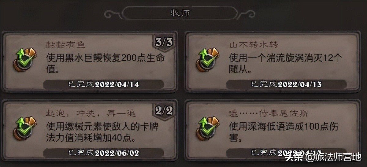 3由于作者我是标准玩家,所以刷攻略都是尽可能用的标准卡组。这次也是为了新玩家还有不玩狂野的玩家,但部分成就只有狂野好做,所以作者我也只贴狂野卡组了。
