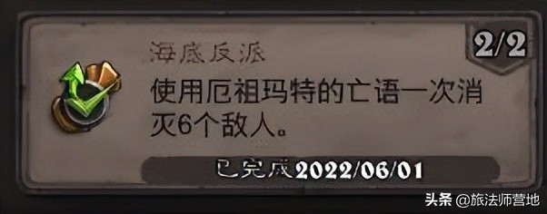 海底反派,使用厄祖玛特的亡语一次消灭6个敌人。阴间成就,还有bug,作者我第一次快死了被迫启动,消灭5个连1阶段成就也没完成。这种成就难点在对手不配合,怪的数量不足,所以还是要狂野做,使用我们的成就劳模644疯狂召唤师,一卡满场。但你又需要腾出格子下厄祖玛特,所以只能用贼的紧急撤离了。所以作者我构建了如今的卡组。