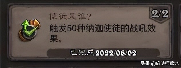 使徒是谁?触发50次纳迦使徒的效果。累积型成就,所谓的纳迦使徒不是中立卡,而是瞎德牧术的新卡纳迦,用对应派系法术触发战吼的那几个随从。这个成就目前有bug,术士的暗影信徒不算进度,作者我黑门术做了半天没跳成就才发现,浪费大量时间。黑门术不行,那就是洞察牧好了,可惜狂野牧师的体型交换变禁卡了。