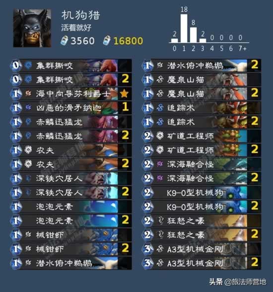 攻略就是起手找机械狗和铜须,尽可能配合铜须使用机械狗战吼,发现牌都是尽可能找机械狗。探底发现没1费怪时记得触发迅猛龙或者芬利洗牌。其实可以带上2个宠物饼干来洗牌的,换下机械金刚的卡位或者狂怒之嚎的。