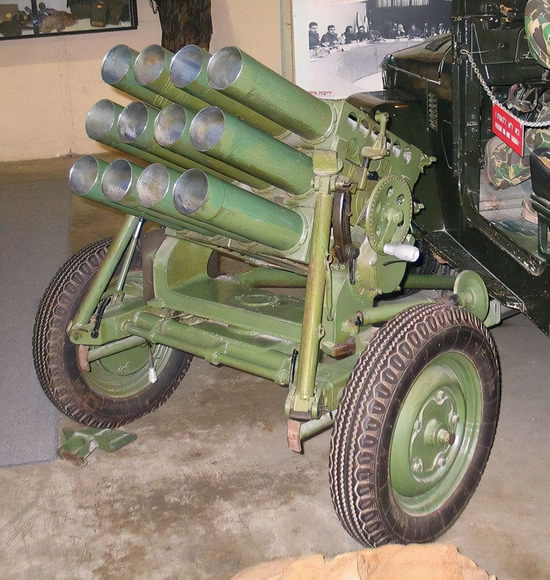 该火箭炮的排列是成三行四列12根发射管。火箭炮组装的每个零件都可以随时拆卸,这种设计方式就使得在实际作战中,该火箭炮非常适合人力分解搬运转移。