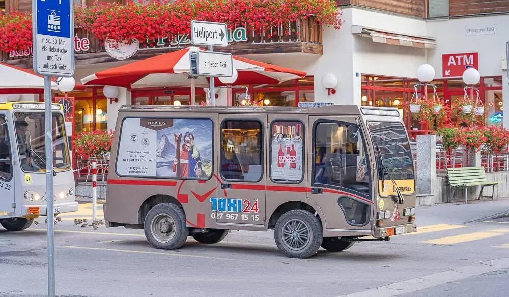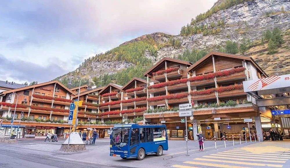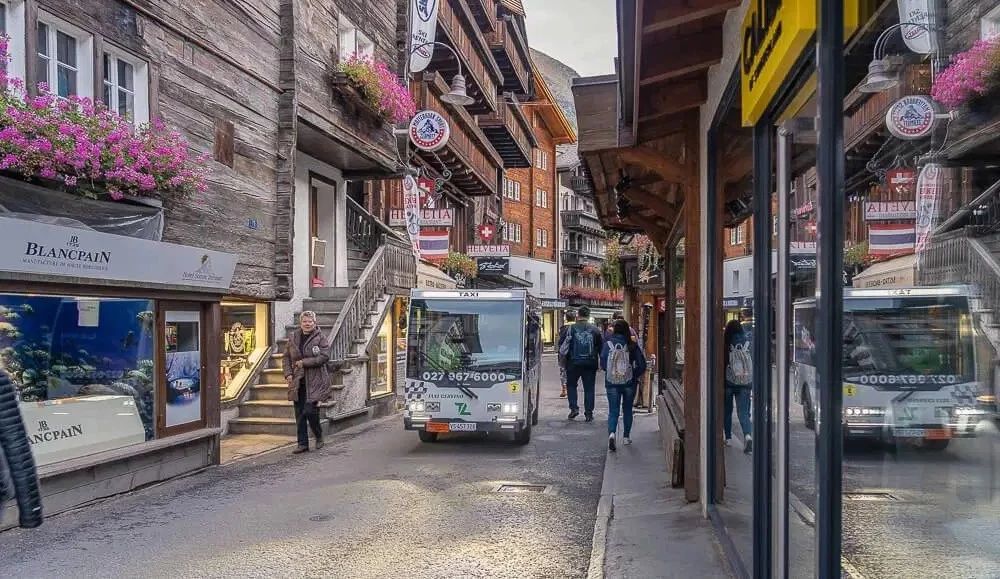 采尔马特小镇禁止汽车,所以顶多搭这种电动接驳车或出租车,不过来这的旅人大多都步行为主。这时候要注意一下,找采尔马特住宿的时候,步行距离要抓一下,饭店到车站的距离尽量不要走超过15分钟,15分钟已经可以走很远了,有时候需要搭火车下车旅游,玩累了回程还要走回饭店真的会….心死….