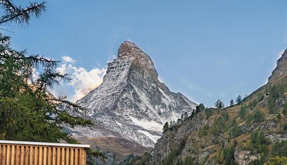 采尔马特怎么拍怎么美,天气好,随时都可以看到山王马特洪峰的美景,尤其光线打在山峰上金黄迷人。