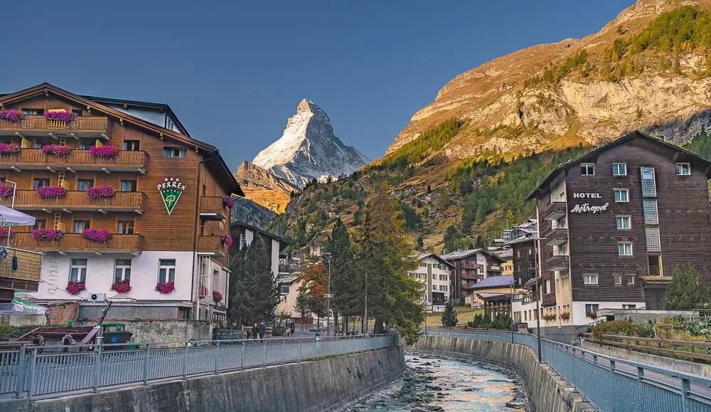 一处隐藏在阿尔卑斯山脚下的小镇采尔马特 Zermatt,却是游客在瑞士旅游的最爱,原因无它,那就是在山脚就能欣赏到山王马特洪峰的迷人景色,尤其在天色刚开,太阳打在山王的金黄,更是Toblerone瑞士三角巧克力的logo,而来到采尔马特不只是可以欣赏美景,还能徒步到Riffelsee拍倒影、搭火车上Gornergrat观景台等,不仅如此,光采尔马特小镇就美到不行。