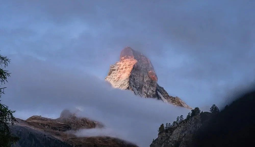 没想到下一秒马特洪峰山头露出,现场可是欢声雷动,就只差太阳的到来~~~