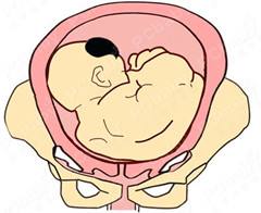 生产的时候是头部先露出妈妈的体外。头先露姿势能使宝宝以最小的径线通过骨盆,自行完成“儿头回旋”的一系列动作,顺利分娩。
