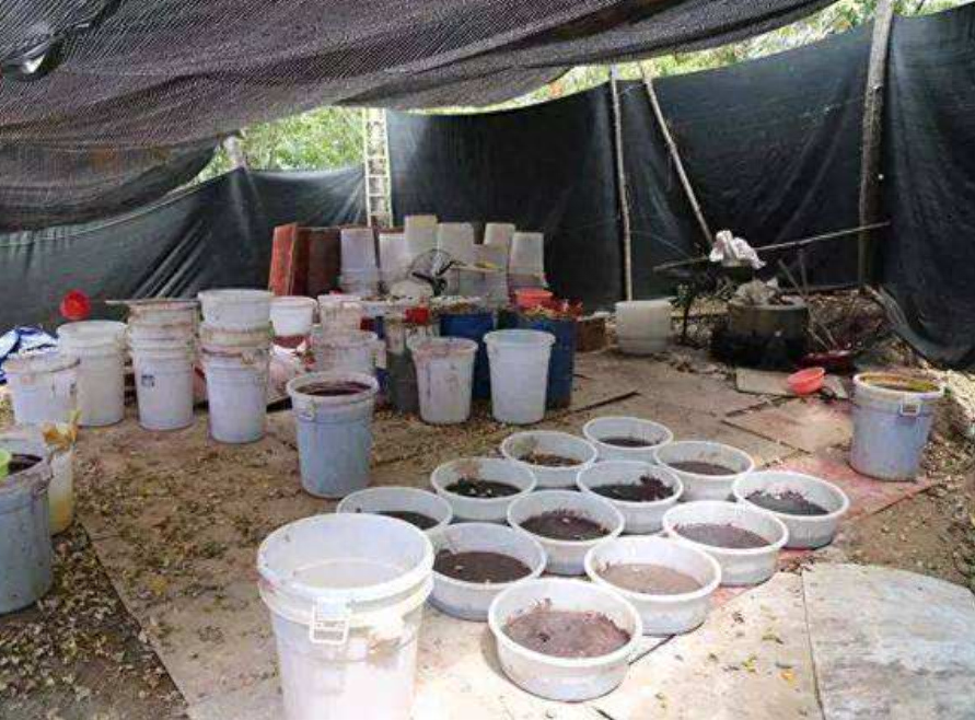 接到命令,制毒师傅将麻黄素运送到博社村的海边,将其倒入塑料桶中,随后加入药剂,一段时间后半成品制作完成。