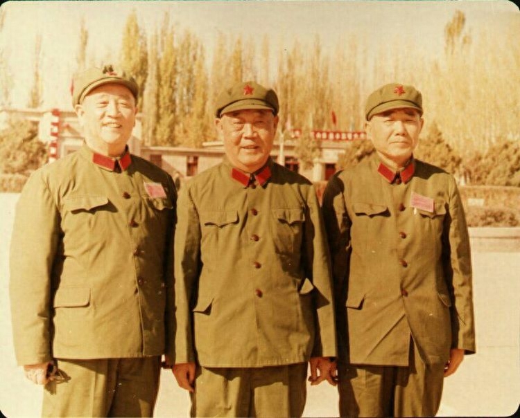 基地首任司令员张蕴钰(中)与副司令员张志善(左)、副司令员兼参谋长张英(右)在一起
