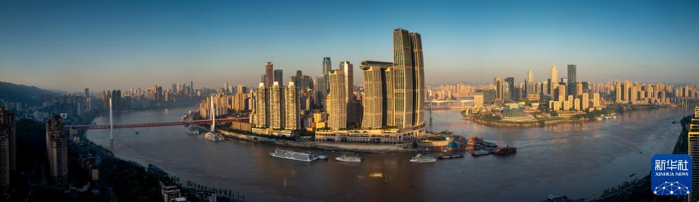 清晨,重庆立体的城市景观与长江、嘉陵江的自然水景交相辉映(9月21日摄)。新华社记者刘潺 摄