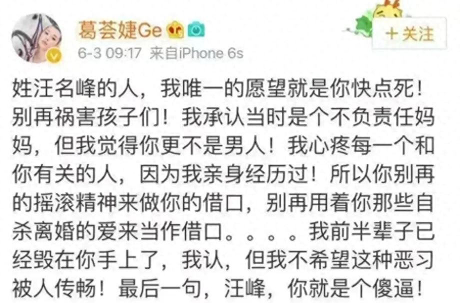 分手后,葛荟婕经常会在网上大骂汪峰,怎么难听怎么骂。