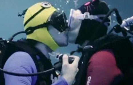 2019年,在一档综艺节目中两人挑战水下接吻。摄影机前,彼此酝酿了一下情欲,互相“啃”了起来,从表情可以看出,他们很是享受这种水下运动。