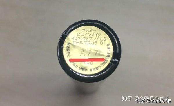 KISS ME(奇士美)通常是3码钢印批号,位置不一,一般位于产品底部标签上或瓶身以及外盒处,如下图的“A77”就是这支我最爱的超强防水睫毛膏的批号(记住是批号不是条形码哦)