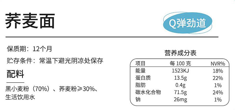 选择真正的粗粮面条同样要关注配料表上粗粮粉在第一位的。成分表粗粮中的脂肪含量近乎于0克。钠含量100克面条不会超过50毫克。