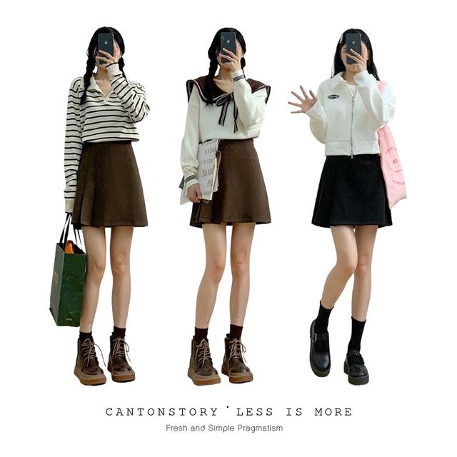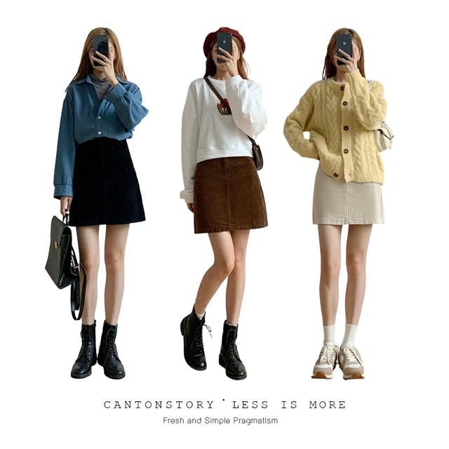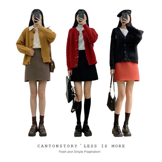 如果觉得马甲不够保暖的话,毛衣开衫也能很好地塑造出复古感,只是在这组搭配中,我们一定要注意内搭的选择,要以“修身版型”为主,比如条纹打底衫,露出锁骨线的衬衫等等。搭配上高腰包臀短裙,少女感十足。