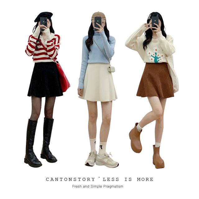 当然了,我们也可以选择加绒丝袜或者打底裤来作为搭配。但仅从效果来说,打底裤是最差的,它会很大程度上消除短裙原有的灵动感,而丝袜和光腿袜则要根据自己的穿衣风格来进行选择。