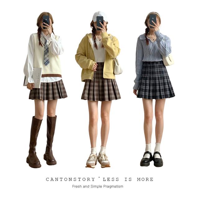 如果想要穿出小个子姐妹的元气感,我们还可以pick一双运动鞋来搭配短裙。此时,喜欢活泼少女感的姐妹,可以优先选择颜色亮眼吸睛的运动鞋款式,比如橙色运动鞋、黄色运动鞋等等。再搭配上一条高腰格纹短裙,秒变大一学妹。