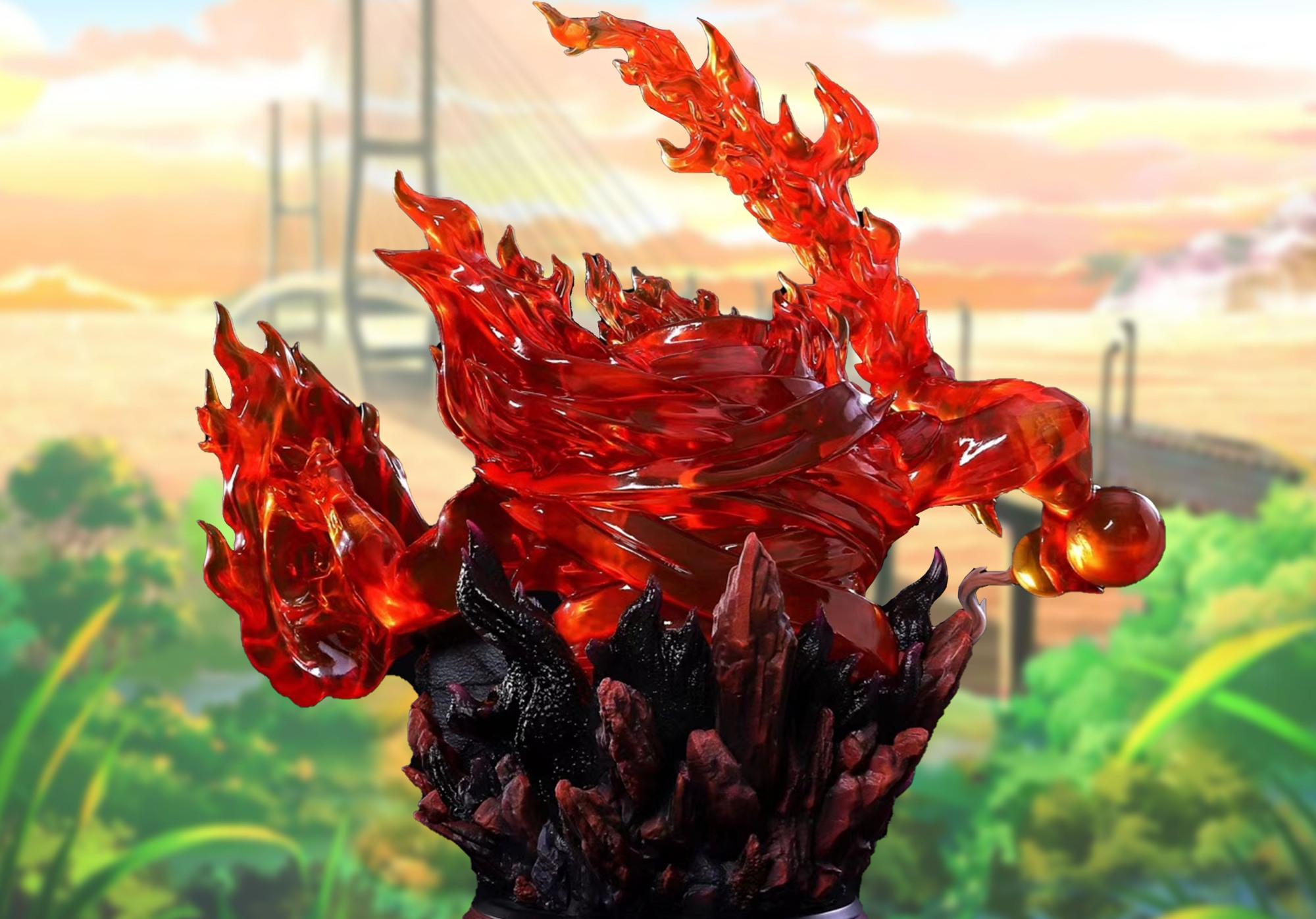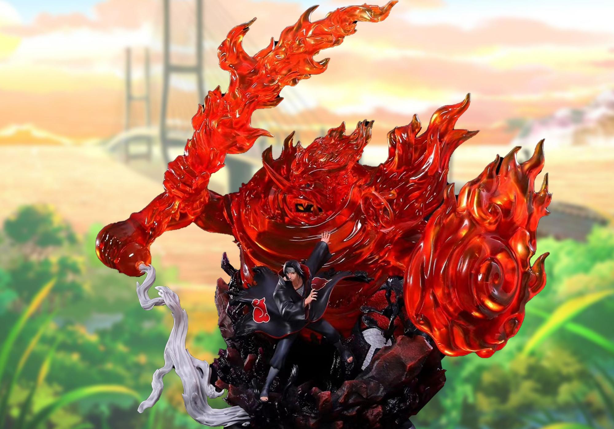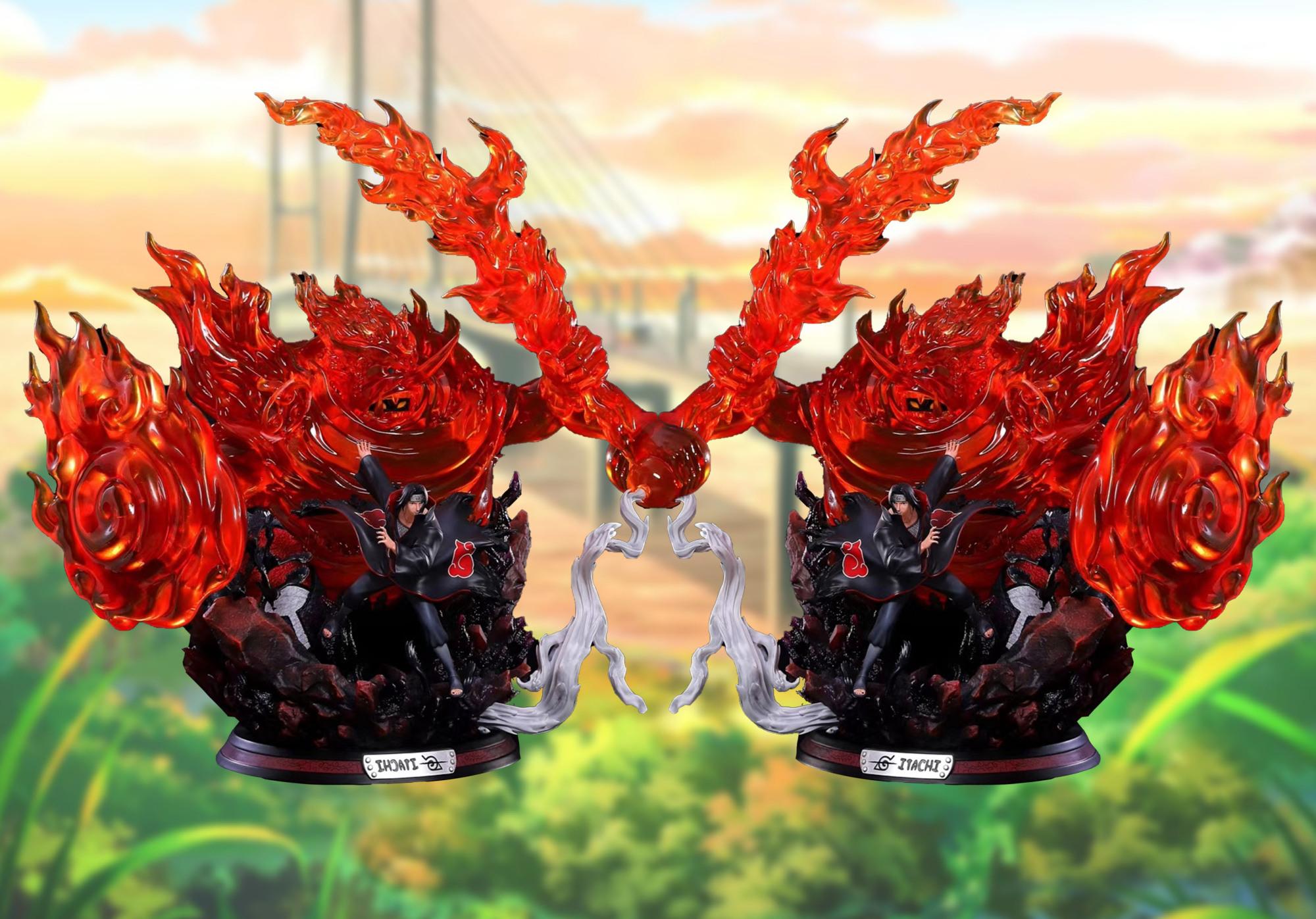 宇智波鼬须佐能乎手办,浑身被红色火焰环绕,底座8只乌鸦成亮点