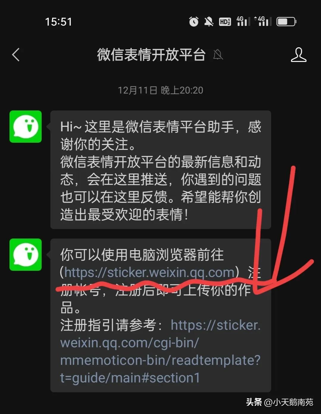 打开浏览器把刚刚复制好的链接粘贴上去,就会看到微信表情开放平台,就在下面图划红圈的地方