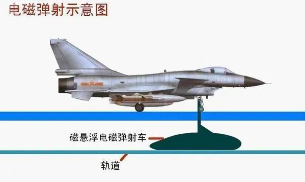 用一个夹子把飞机夹住,夹子与线圈相连,放置在强磁场中,当线圈一通电,夹子就带着飞机跑起来了。电流越强,动能越大。电流足够强,就可以使飞机在几十米内加速到每小时250公里的起飞速度。