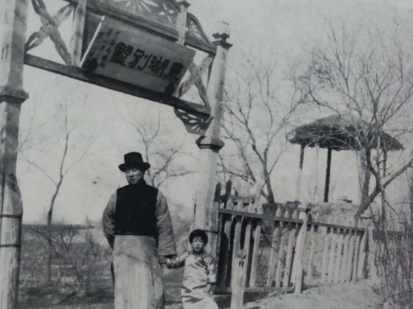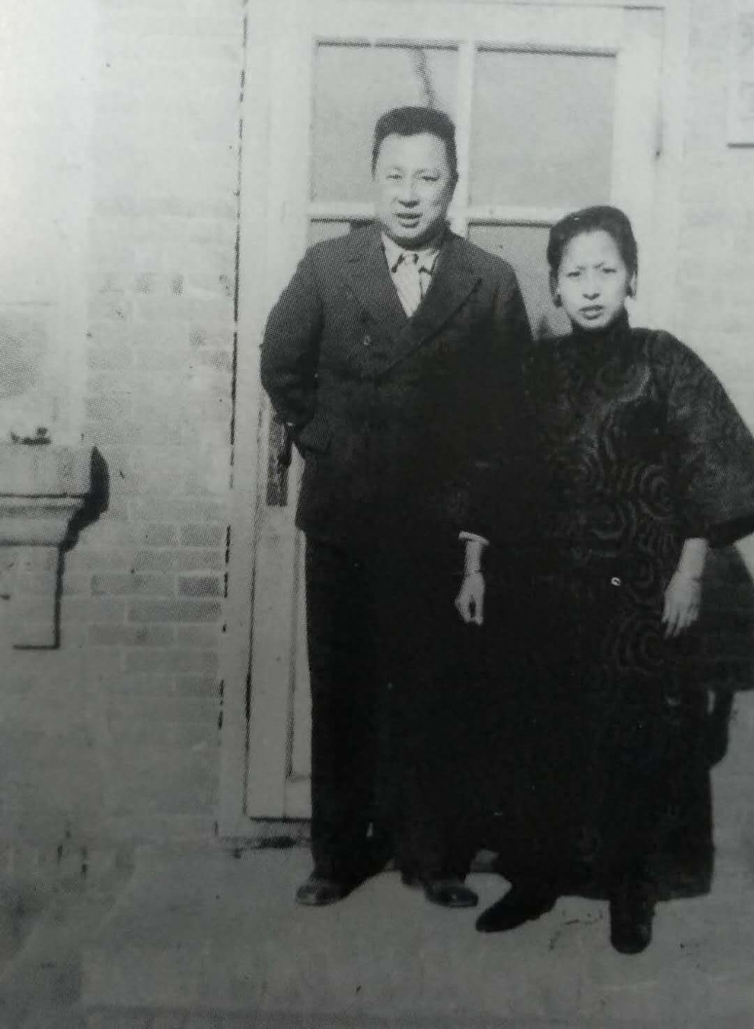 谢珂将军与夫人在齐齐哈尔官舍胡同住宅前合影