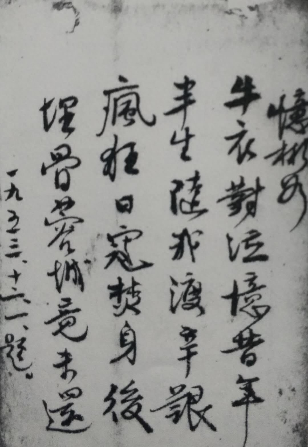 谢珂将军手书悼念夫人诗,夫人于1947年病逝于成都
