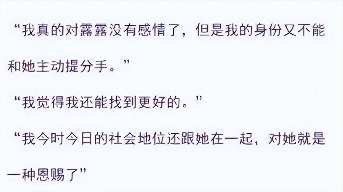 明明不爱了,却还是吊着陈露,明明想分手,却害怕毁了自己的事业迟迟不敢提。