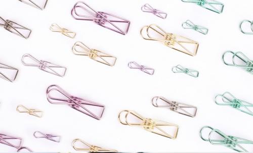 现在的夹子大致就几种:镂空长尾夹、普通长尾夹、燕尾夹、以及一些形状较为有特色的夹子。它们的形状看似是没什么差别的,只是用的时候就能感受到之间的差别了。