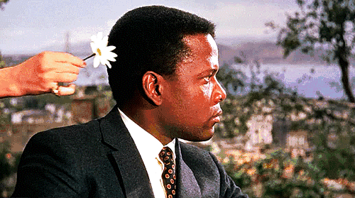 电影《猜猜谁来吃晚餐Guess Who's Coming to Dinner》(1967)剧照,西德尼·波蒂埃Sidney Poitier(左)凯瑟琳·霍顿Katharine Houghton(右)