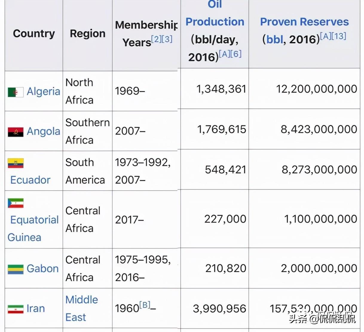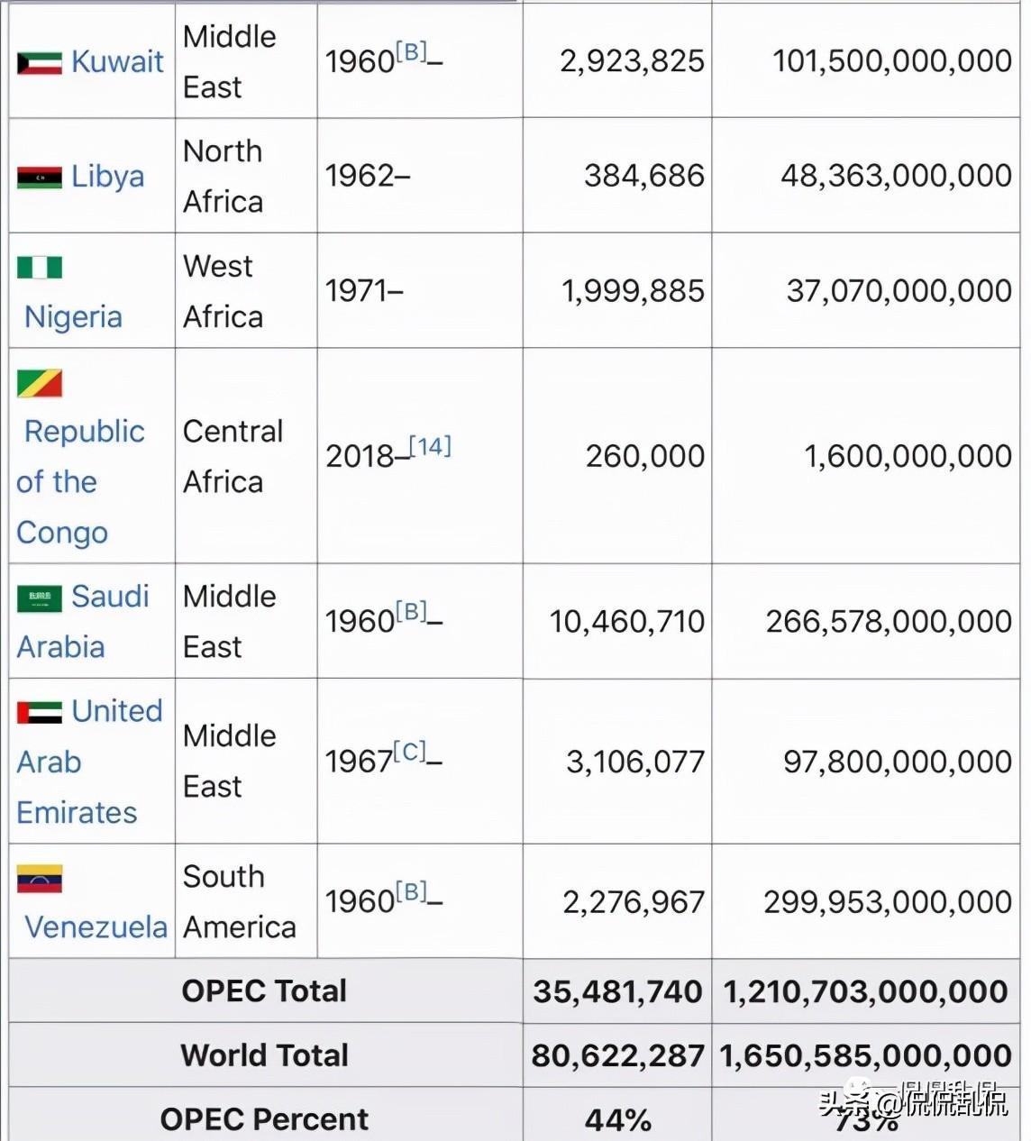 OPEC这十四个成员国,石油日产量占全球44%,石油储量占全球73%。