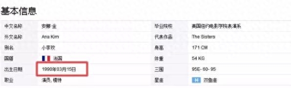 拉到出生年月,我更加确定了这个人资料必须是安娜金自己撰写的。