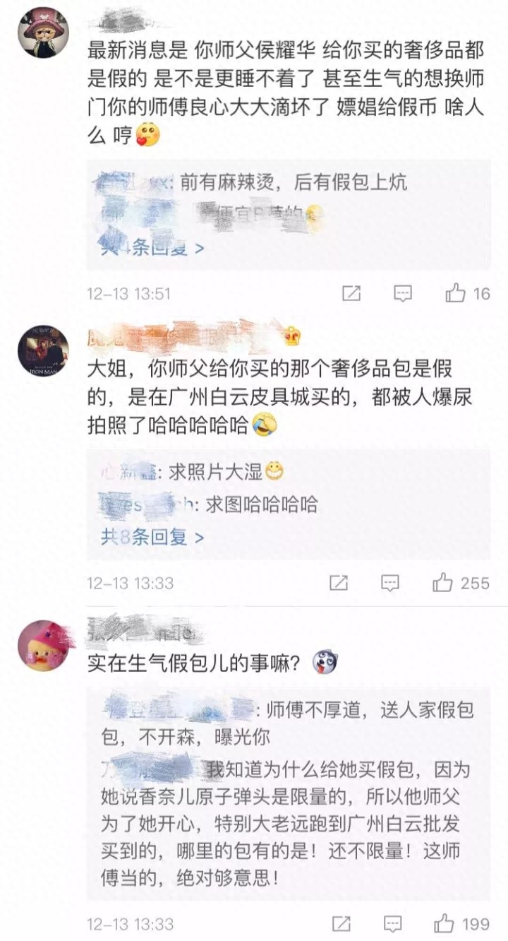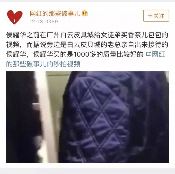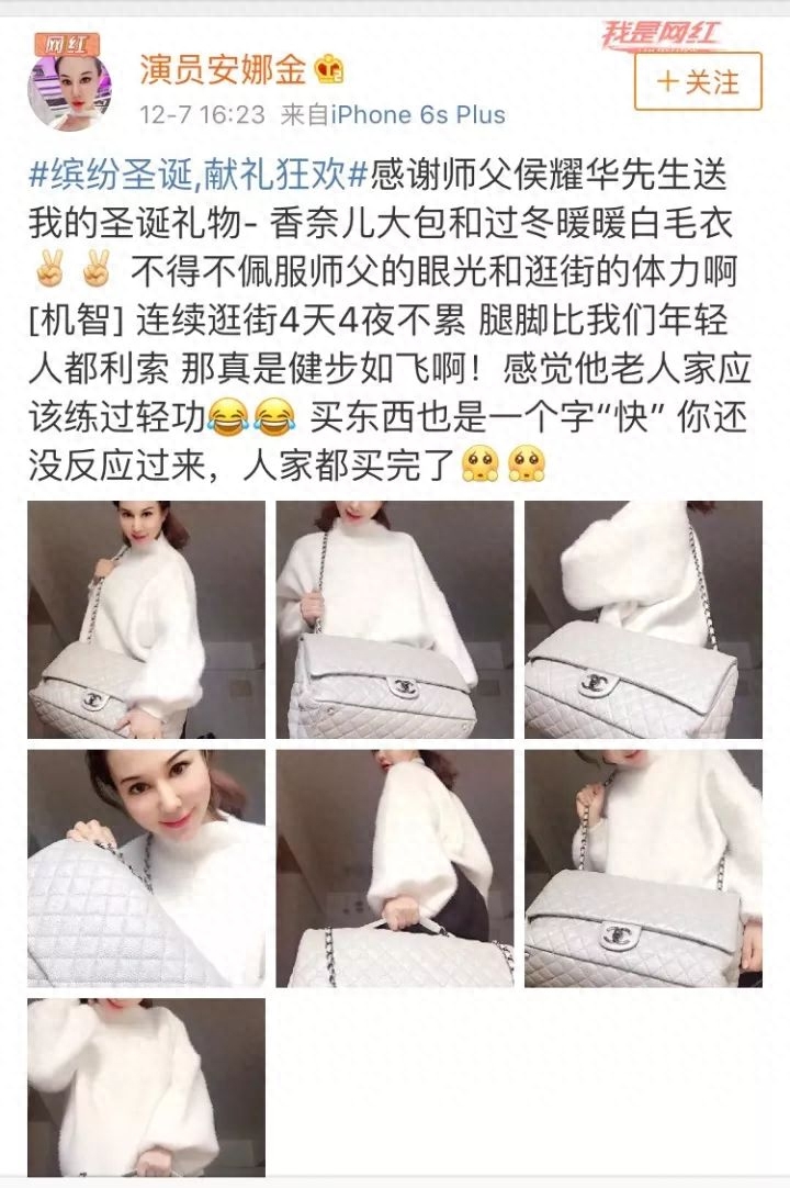 不知道「侯耀华买的是1000多的质量比较好的包包」这个消息,会不会让她心里好过一点呢?