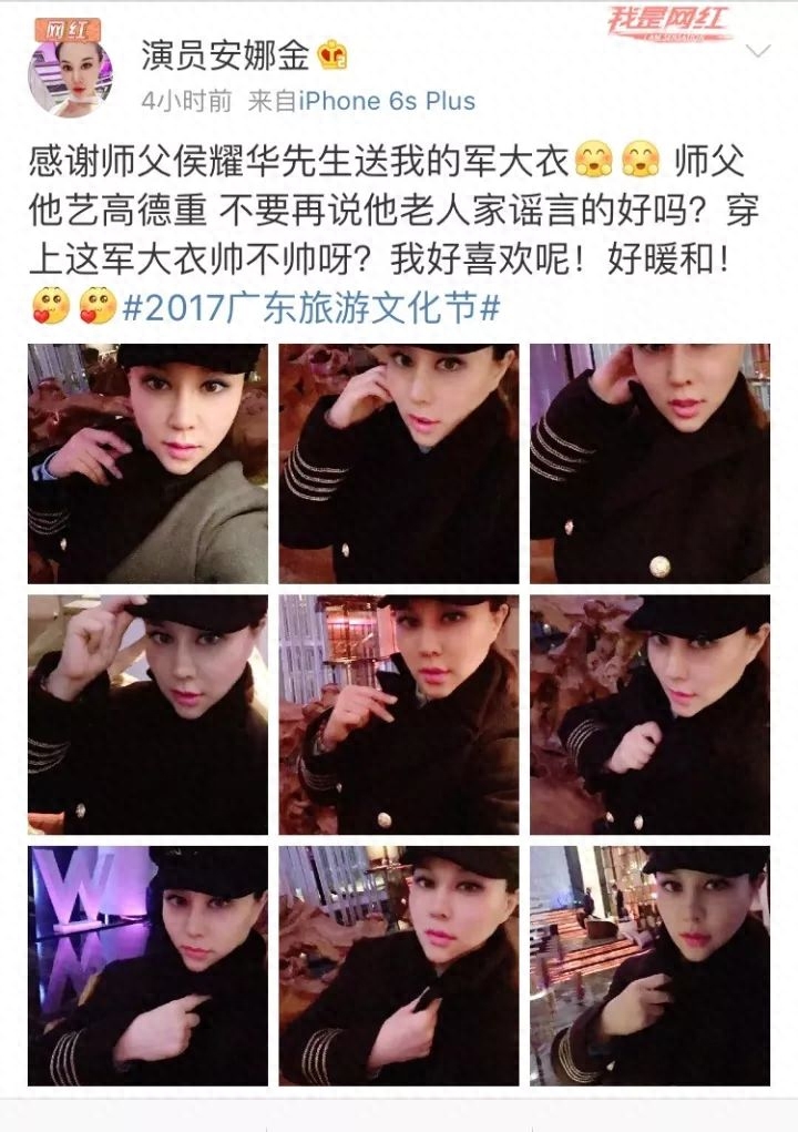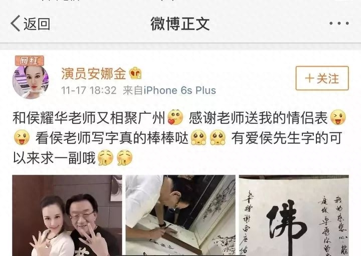安娜金女士一夜成为侯耀华门下存在感最强的弟子,主要因为她不走寻常路的高调,微博疯狂「秀师恩」。