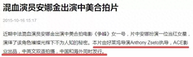2015年,安娜金女士发通稿称出演好莱坞电影,饰演女明星。