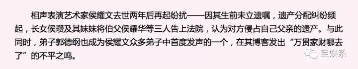 还因此与郭德纲闹翻,最终继承侯门衣钵,成为了「侯门大家长」。