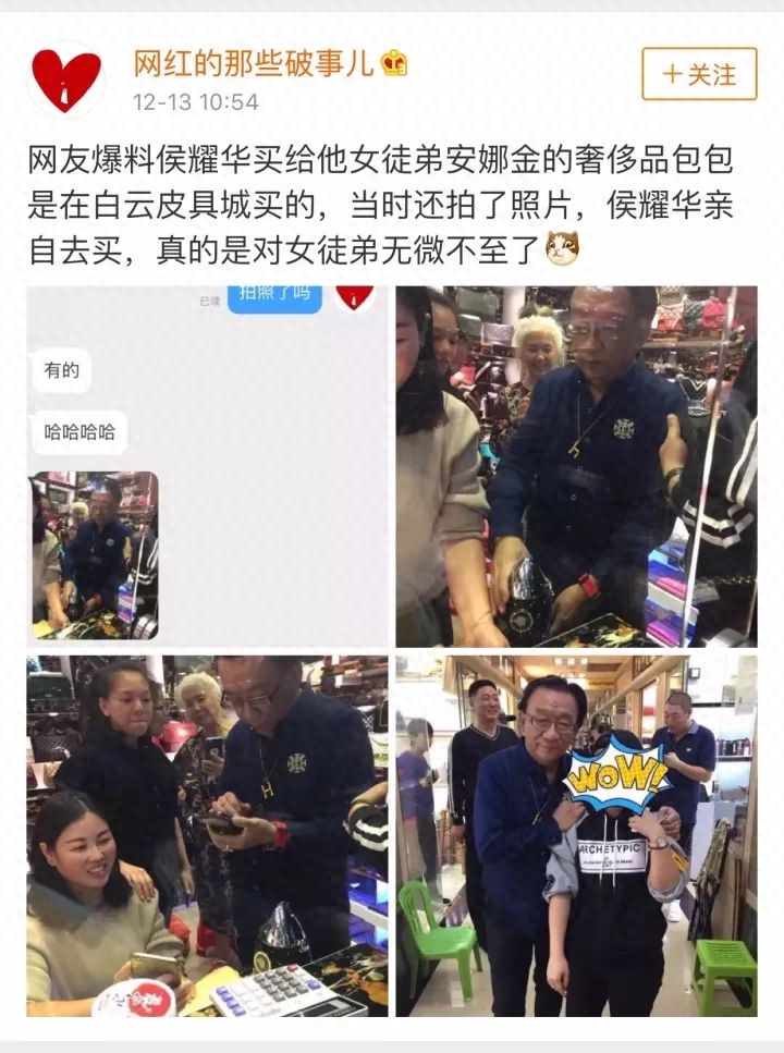 但,这座金矿一点都没让吃瓜群众失望!哈哈哈笑了一夜后,今早,网友爆出「侯耀华送给安娜金的包是白云皮具城买的」!