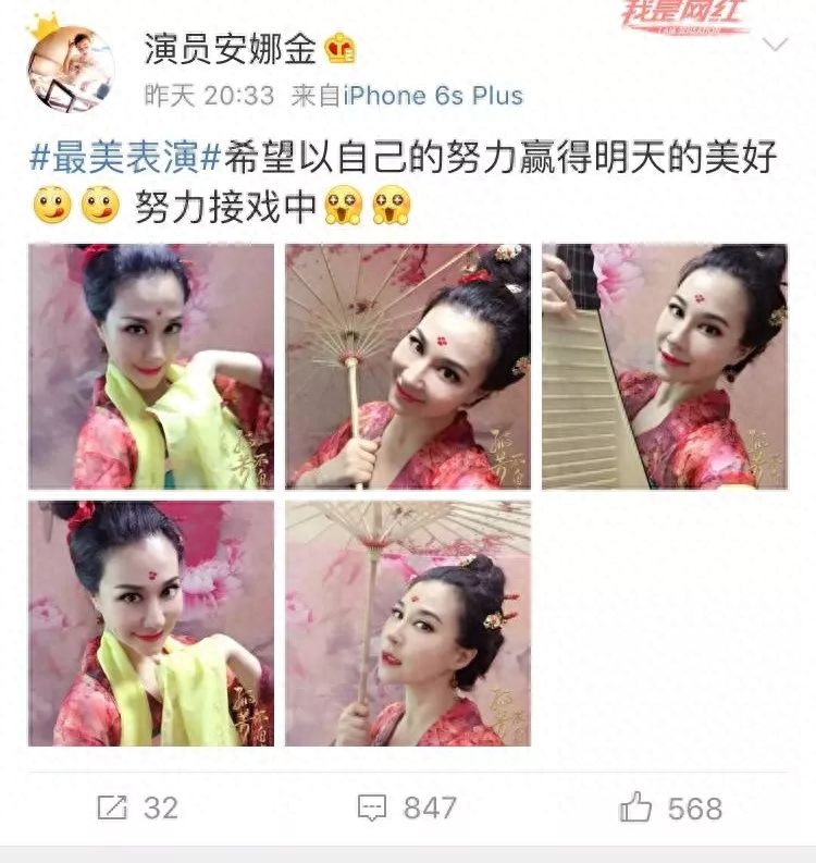 被网友「开掘」了的「宝藏大姨」一开始并没有感到难为情,依然孜孜不倦地在微博上分享自己辣眼睛的照片,乐观表示「努力接戏中」。