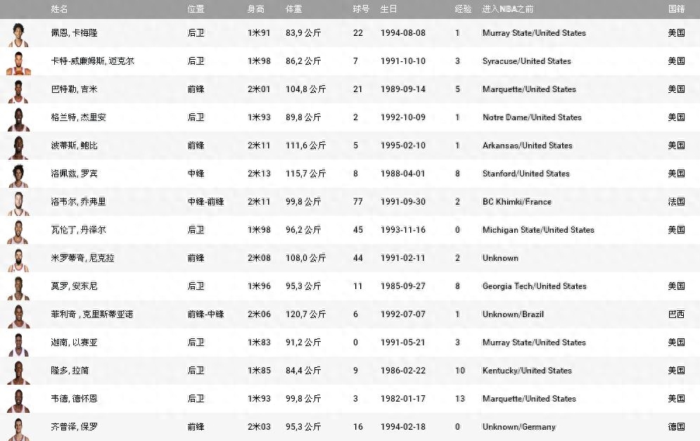 附录2016-2017赛季公牛队球员名单: