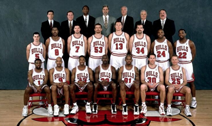 球队荣誉:6次NBA总冠军(1991-1993,1996-1998) 、常规赛战绩历史第二(1995-96赛季72胜)。