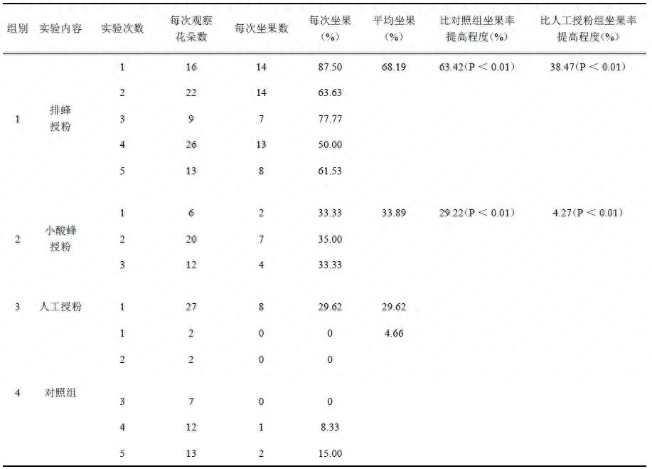 表3 排蜂、小酸蜂对砂仁授粉的比较统计