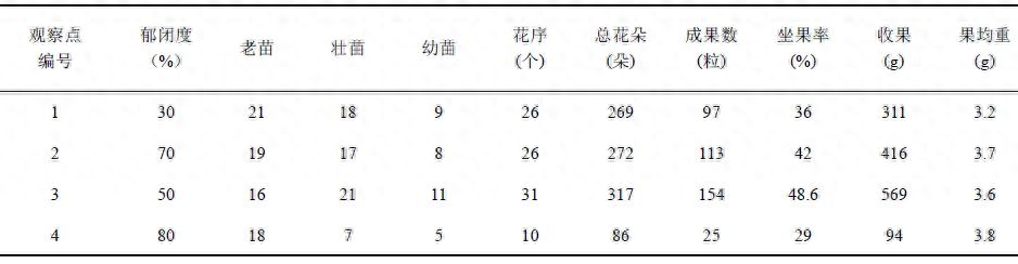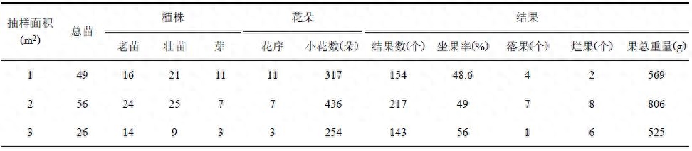 苗的密疏、壮弱与花果多少对产量影响也较大,见表2。每亩控制在2.5万~3万株较适中。