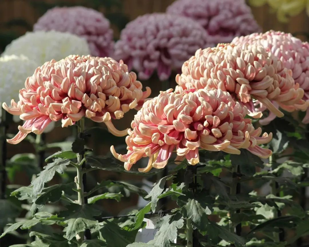 菊花的品种极其丰富,它是花园里最华丽的一种秋季开花植物之一,它可以开出大量的花朵,而且花色特别鲜艳,有粉色、红色、黄色、白色、紫色和橙色等,甚至有很多混色的品种。菊花也是分成几个不同的类型,它们在户外也可以作为多年生植物栽种,它们有良好的耐寒能力。