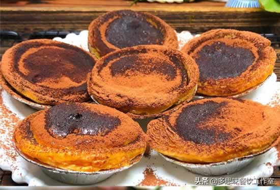 5蛋挞表面焦糖色,蛋挞皮有金黄色即可出炉