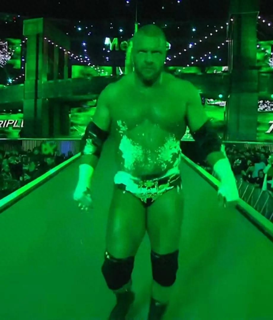 霸气的出场音乐,霸气的灯光烟花效果,配上Triple H霸气的身材。每次看Triple H出场都很期待。
