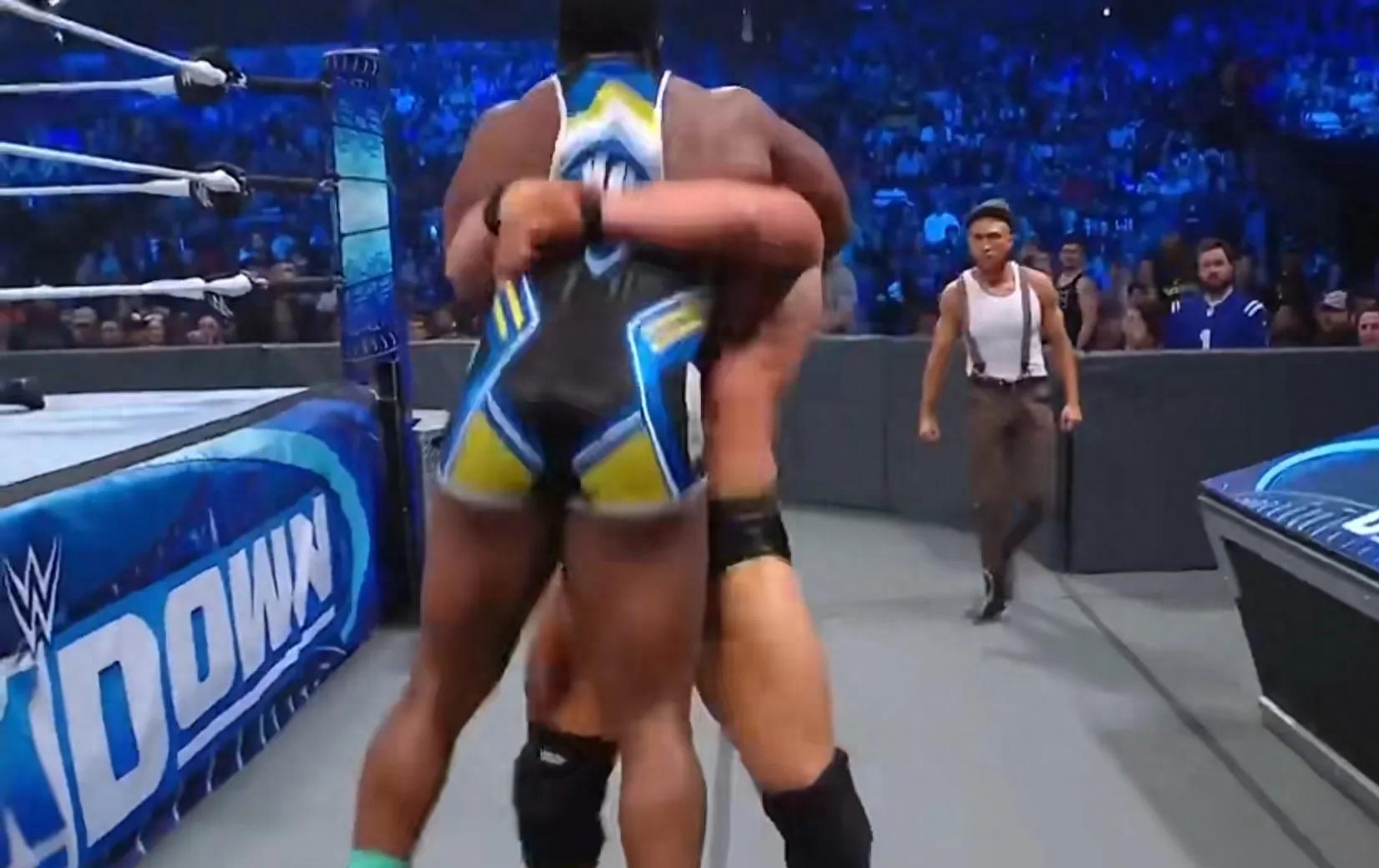 在SmackDown的一场双打比赛中,当时大E的对手霍兰德想在擂台下对大E使出一记后抛摔。