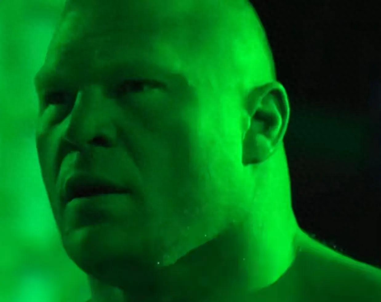 一出场Triple H的肚子上就能明显看得出来被干冰冻伤,在台上的布洛克莱斯纳看到了也是一脸担心。
