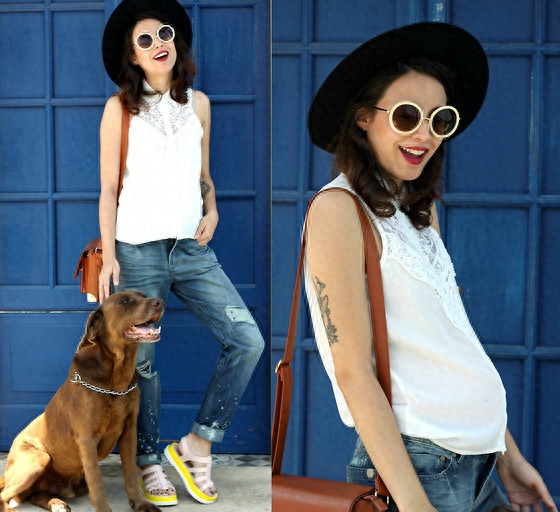 刻意用上黑超及阔边帽作配衬,型格感倍增。