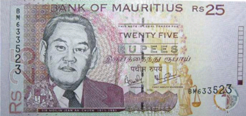 而毛里求斯为了感谢朱梅麟为国家做出的贡献,便将其肖像印刻在了本国货币,25面值的毛里求斯卢比上。