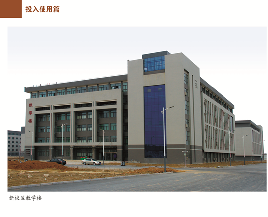 2012年9月,建设完成了教学楼13171㎡、实验1楼13732㎡、实验2楼18113㎡、食堂11916㎡、浴室锅炉房2536㎡、校医院7112.7㎡、学生2、3#公寓16114.7㎡、学生1#公寓6920㎡、4、5#学生公寓12574㎡、体育场1811㎡、大门及门卫168㎡;2013年10月,整体搬迁新校区办学。
