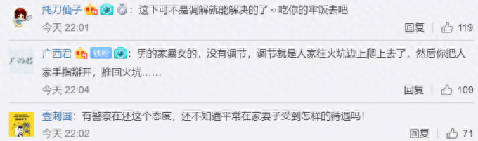 网友对这名男子的行为感到愤慨,有人就表示:有警察在还这个态度,还不知道平常在家妻子受到怎样的待遇。
