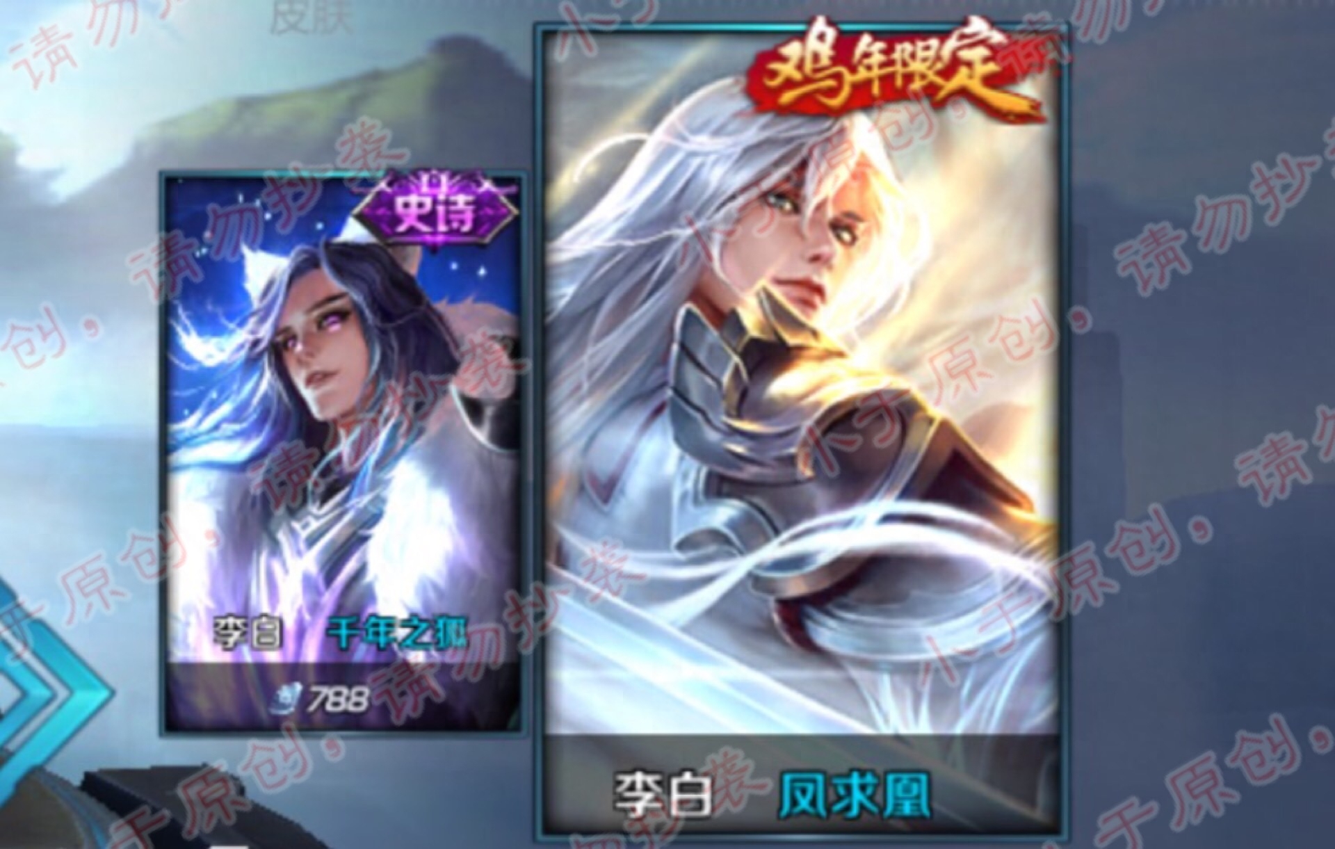 排在第五位的是每年的属相限定皮肤,像去年鸡年的凤凰于飞,以及今年即将上线的杨戬、后羿的限定皮肤~